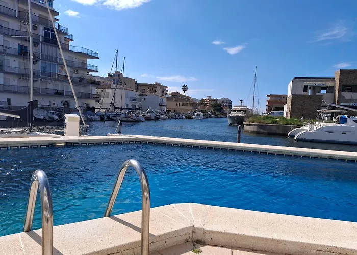 Featuring a terrace with a swimming pool, as well as views of the lake, the 1-room Apartamento Con Piscina - Magnificas Vistas Al Canal - Aire Acondicionado A Roses is located in the Santa Margarida district. Area attractions include the miniature Minigolf Greens, 2.6 km away, and the expansive Platja d'Empuriabrava Beach is around 10 minutes' drive from the 40 m² apartment.